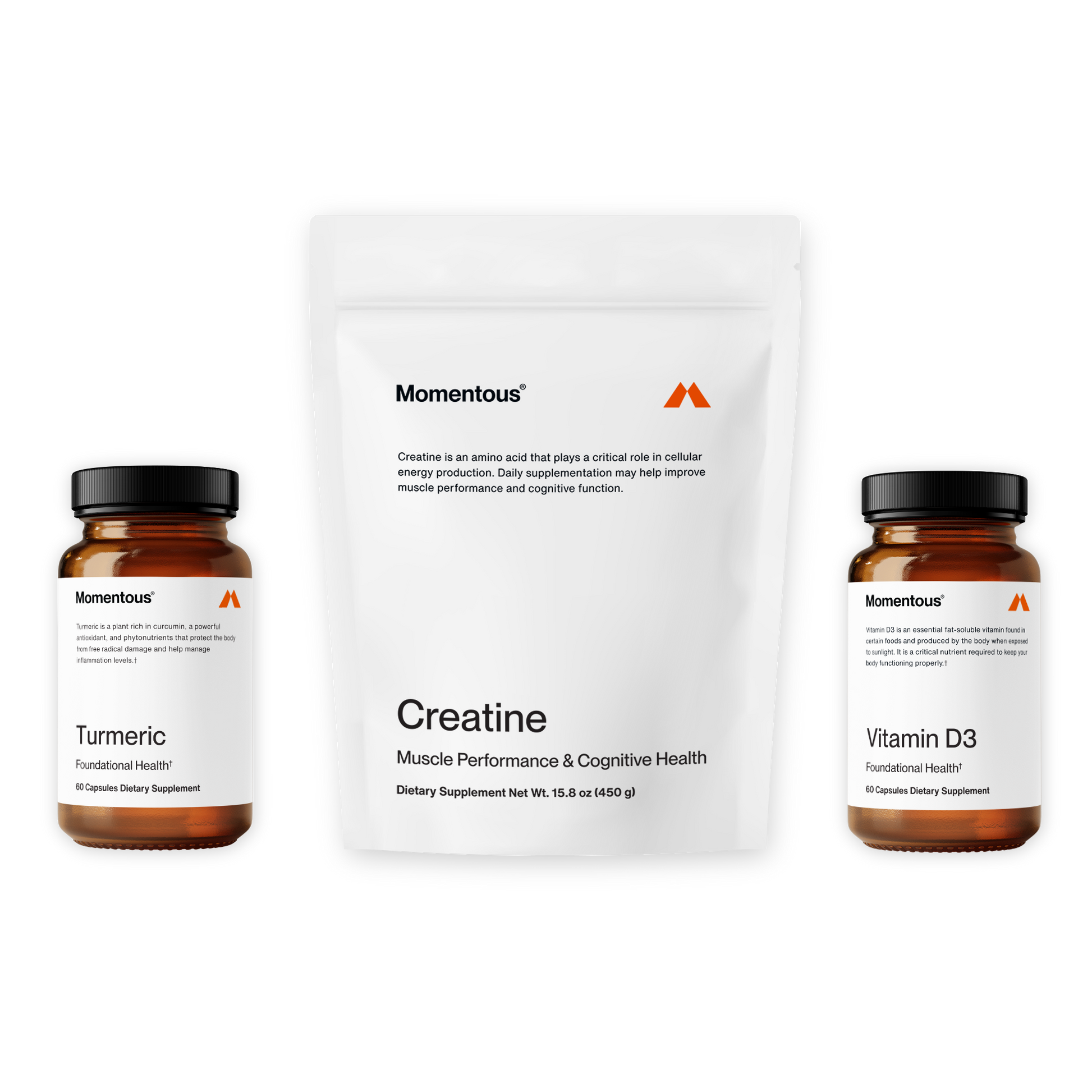 The Anti-Inflammatory Bundle for Women was designed with Dr. Stacy Sims and combats oxidative stress from contraceptives with Turmeric, Creatine, and Vitamin D3. The Anti-Inflammatory Bundle for Women was specially crafted with Dr. Stacy Sims for athletes on hormonal birth control. This triumvirate of Turmeric, Creatine, and Vitamin D3 acts as a frontline defense against increased oxidative stress and inflammation. While contraceptives challenge the body with oxidative stress, Creatine steps in to strengthen antioxidant defenses. Turmeric, with its potent curcuminoids, tackles inflammation head-on, and Vitamin D3 modulates this response, ensuring a balanced, holistic approach to your health.