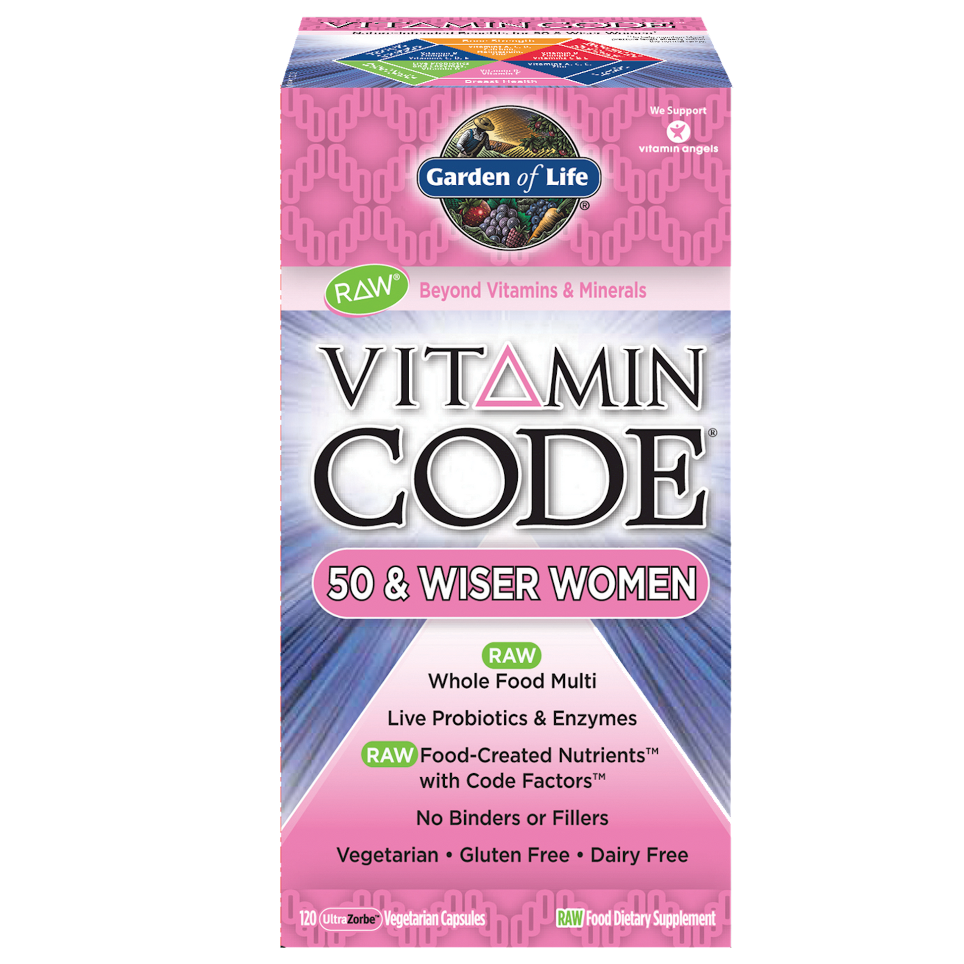 Made with individually grown nutrients utilizing probiotic cultivation to produce RAW Food-Created Nutrients, Vitamin Code supplements are delivered in a whole food base of fruits and vegetables. Vitamin Code supplements are RAW, which not only means that they are produced below 115 F, but also means that these nutrients come with their natural cofactors, along with live probiotics and enzymes, just like raw foods! Vitamin Code raw powders are delivered in capsules without any binders or fillerseverything you want and nothing you dont want. Vitamin Code 50 & Wiser Women is a comprehensive RAW whole food multi-nutrient formula, specifically formulated to meet the unique needs of women over 50, providing the nourishment the body craves to support optimal health and well-being.* Twenty-three fruits and vegetables add supporting antioxidants, vitamins and nutrient cofactors. RAW means no high heat, synthetic binders, fillers, artificial flavors, sweeteners, colors or additives commonly used in tablets. Whole food means RAW Food-Created Nutrients are blended in a base of 23 fruits and vegetables together with food cofactors. **To help support blood pressure levels already within the normal range. Vitamin Code 50 & Wiser Women Benefits: Supports Bone strength* Supports breast and thyroid health* Supports healthy heart and blood pressure within the normal range** Supports healthy digestion with live probiotics and enzymes* Vitamin Code 50 & Wiser Womencomprehensive RAW whole food multi-nutrient formula to meet the needs of women over 50.